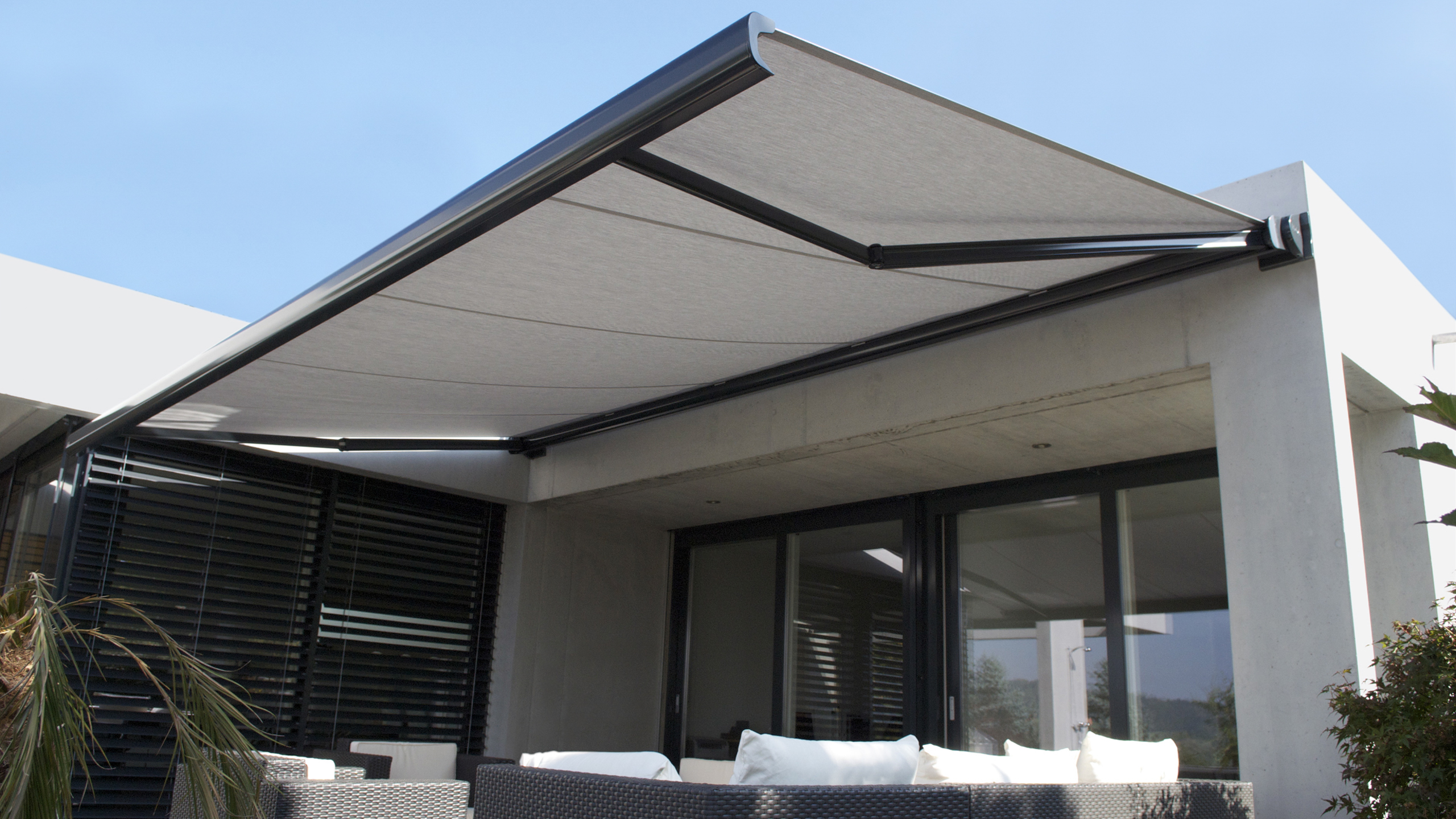Das Modell TENDABOX ist eine schlanke Cassettenmarkisen in zeitlos elegantem Design. Sie eignet sich besonders zur Beschattung von kleineren bis mittleren Flächen, wie es bei Balkonen und Terrassen der Fall ist. Durch die klaren Linien der abgerundeten Cassette fügt sich die Markise harmonisch in die Architektur ein – auch als gestalterisches Element. Das dicht schliessende Ausfallprofil schützt das Tuch und die Gelenkarme vor Niederschlag und Schmutz. Somit ist eine lange Lebensdauer gewährleistet. Zwei Konsolen an den Aussenseiten ermöglichen eine einfache und zeitsparende Montage an Wand, Decke oder Dachsparren. Der Neigungswinkel lässt sich stufenlos einstellen. Die TENDABOX kann wahlweise mit einer Handkurbel oder mit einem optionalen Elektromotor angetrieben werden.