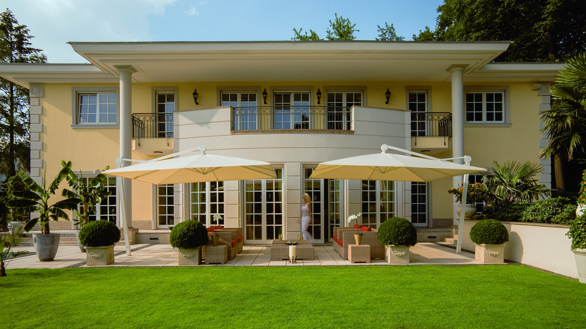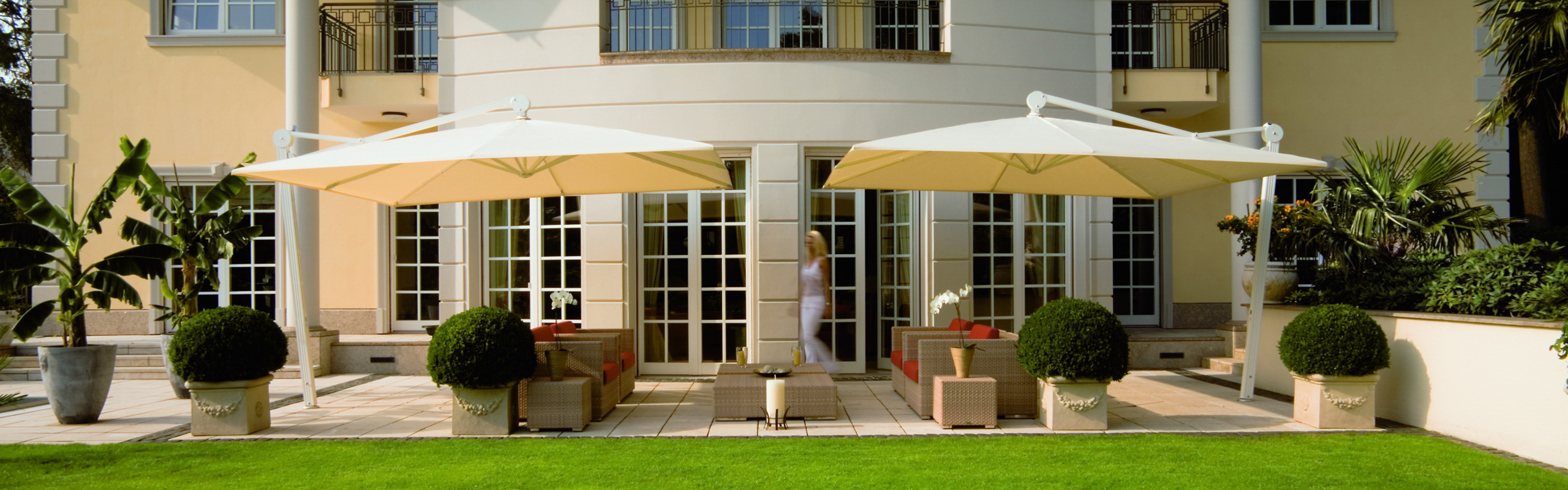 Für Gemütlichkeit und Komfort im Schatten sorgt der AMBIENTE im XXL-Design – mit einer Spannweite von bis zu fünf Metern. Der AMBIENTE ist ein Freiarmschirm der Sonderklasse und überzeugt aufgrund seiner Dimension und stabilen Konstruktion. Während Trägerstange und Gestell des Schirmdaches aus gepressten Aluminiumprofilen sind, besteht der Seilzug aus Drahtseilen und einer rostfreien Gewindespindel. Das Schirmdach lässt sich komfortabel per Kurbel oder optionalen Motorantrieb öffnen und schliessen. Dabei bleibt das darunter stehende Mobiliar an seinem Platz. Ist der AMBIENTE fix im Boden verankert, kann er – abhängig von der Schirmgrösse – Windgeschwindigkeiten von maximal 40 km / h problemlos standhalten.