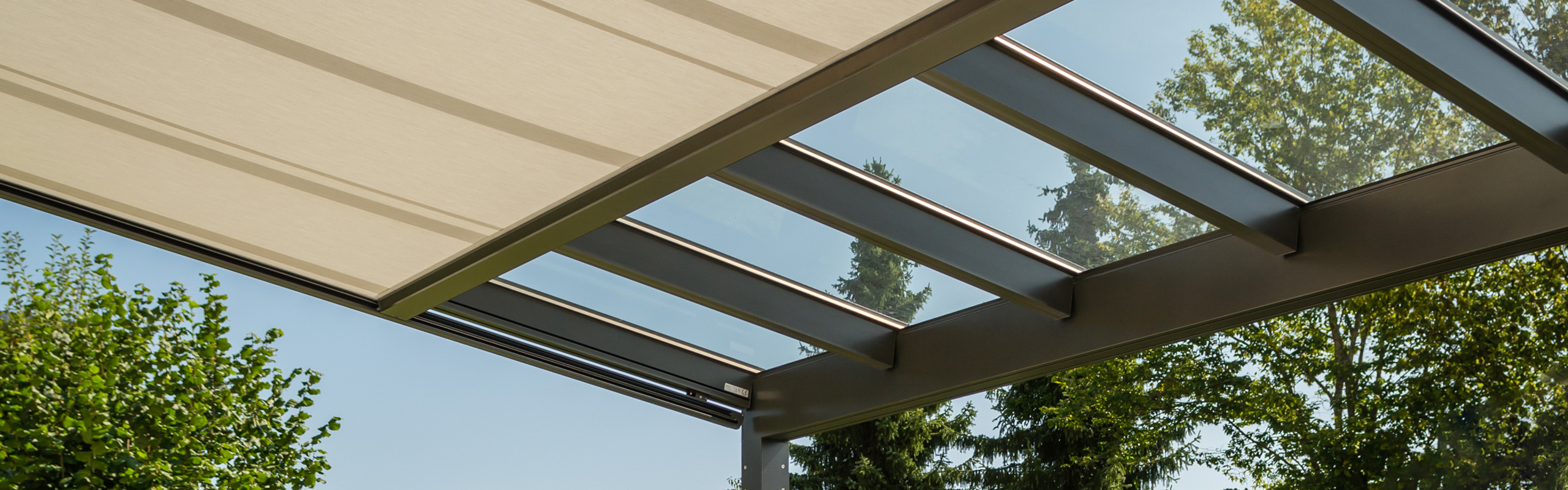 Die Unterglasmarkise ARNEX PS2500 bietet einen wirkungsvollen Sonnenschutz für Glasdächer. Gleichzeitig wird der Stoff effektiv vor Feuchtigkeit und Schmutz geschützt. Auf diese Weise kann die Markise auch bei Regenwetter als Sichtschutz gegen neugierige Blicke von oben verwendet werden. Um ein optimales Tuchbild zu erreichen, sorgen Gasdruckfedern für eine konstante Spannung. SIR-Führungen bilden einen spaltfreien Abschluss und unterstützen die Spannung des Tuches. Aufgrund der filigranen und modernen Formensprache, fügt sich die Unterglasmarkise perfekt in die moderne Architektur ein, setzt aber auch an traditionellen Bauformen sehenswerte Akzente. Die Unterglasmarkise ARNEX eignet sich als perfekte Ergänzung zum Glasdach NYON GP3100, kann aber auch an anderen Glasdächern und Wintergärten eingesetzt werden. Zudem eignet sie sich hervorragend für Glasdächer, welche offen oder teilverglast sind.